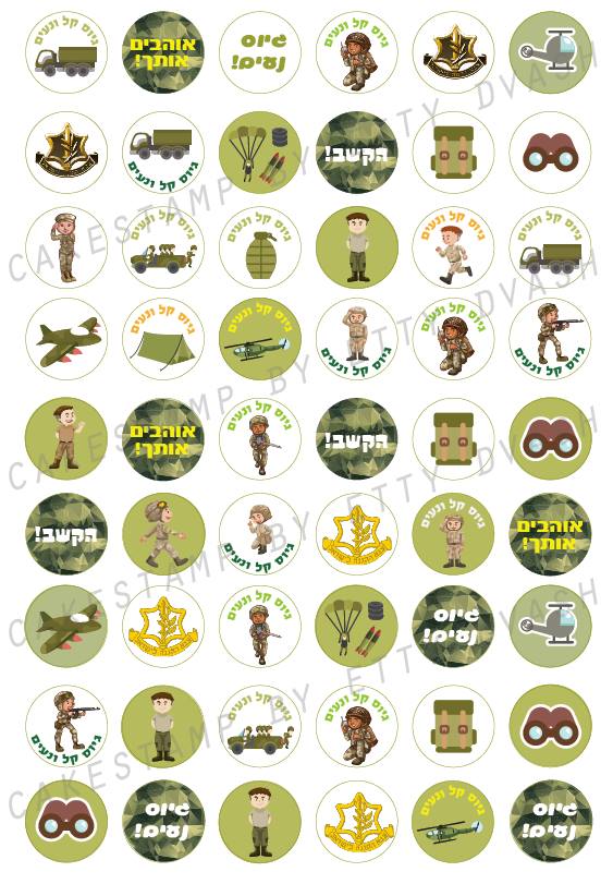 דף טרנספר לחייל לנשיקות מרנג ולמטבעות שוקולד