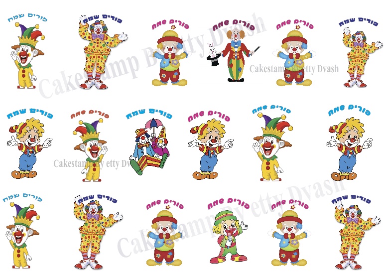 שקף טרנספר - ליצנים - חג פורים לנשיקות